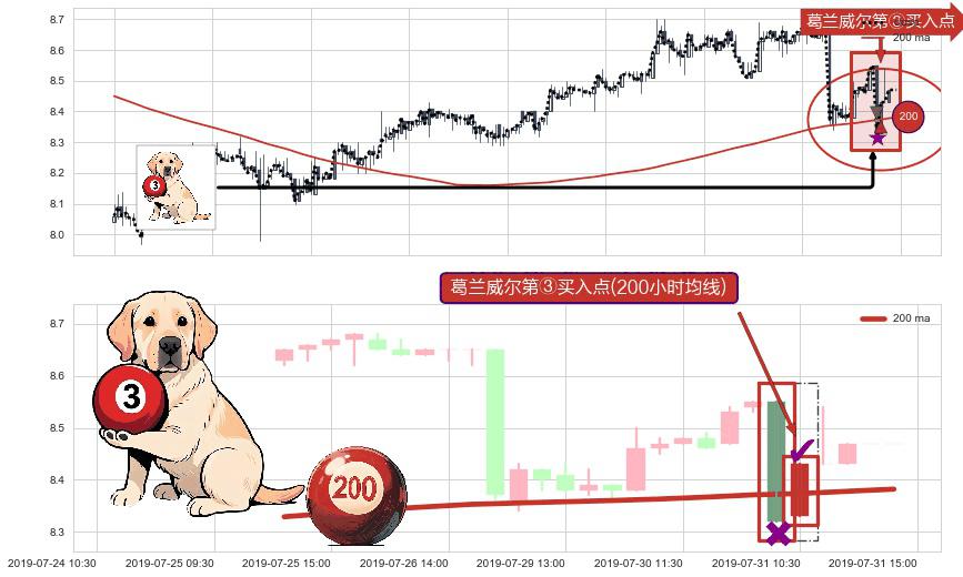 ⚀ 2019-07-31 10:30:00-小时显现 葛兰威尔均线 200小时均线 第③买入点 上升趋势的中继信号,后市看涨,买进信号