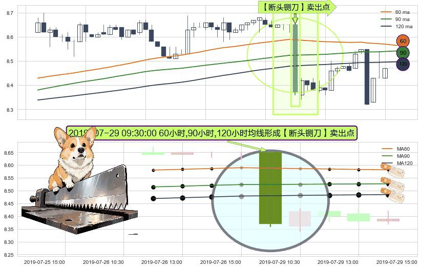 ⚀ 2019-07-29 09:30:00小时显现 60小时-90小时-120小时均线 【断头铡刀】卖出点 看空信号,后市看跌,卖出