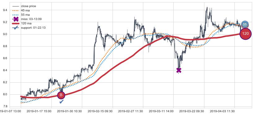 ⚄ 价格在均线获取支撑后再次向上反弹了【较短】距离, 第②买入点 支撑效果【仍需验证】