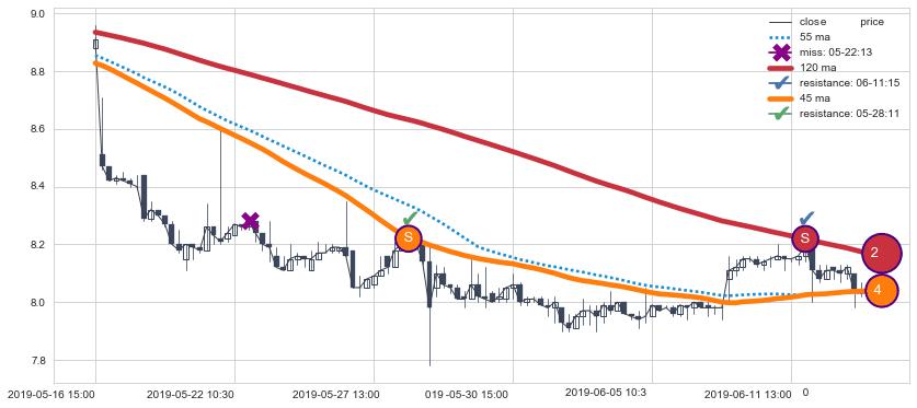 ⚃ 在破位点附近ma走势已有下垂迹象,稍后的走势中ma下降趋势明显,信号【可信度高】