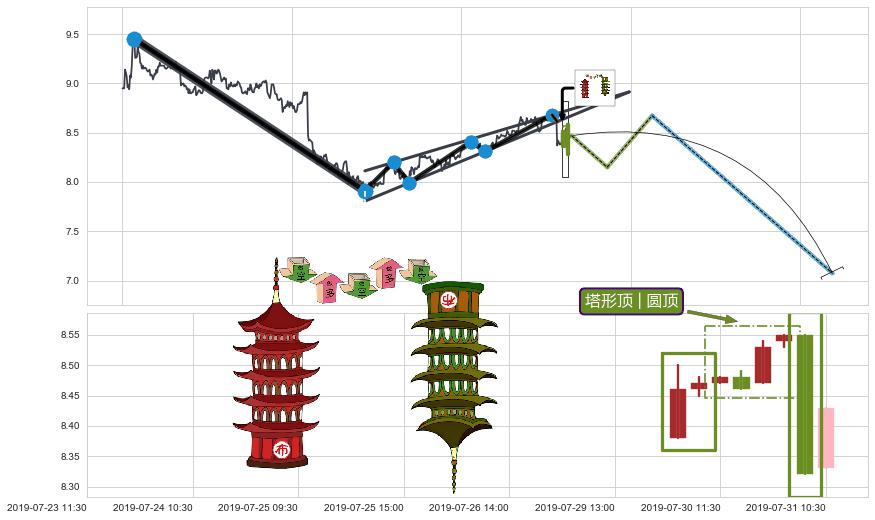 ➢ 智能识别已发生事件:缠论第一类卖点【卖❶】→(07-26:09: 8.68 )