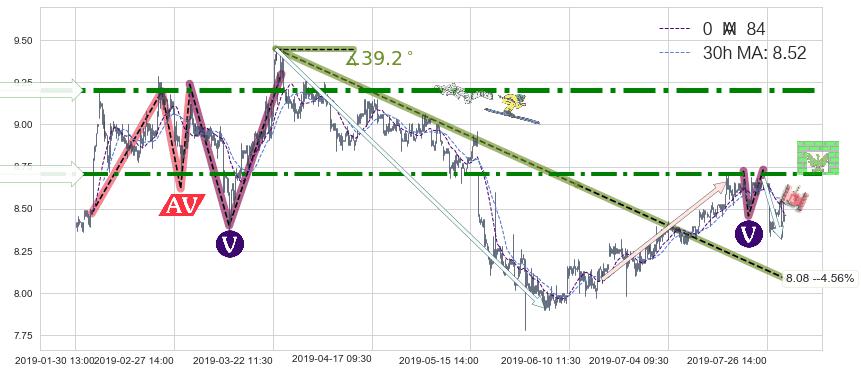 ♞ 20小时均线:8.46,30小时均线:8.52→ 快线<慢线