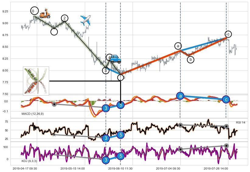 ➣ a,c调整浪KDJ走势未出现明显背离