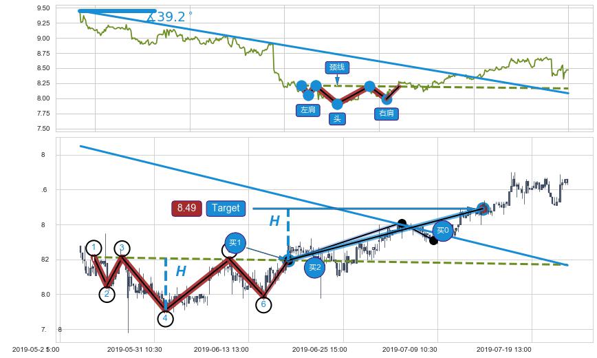 ➣ 【买2】: 保守型 买点 →(06-21:11: 8.20 )形成头肩底突破后的【回抽确认】