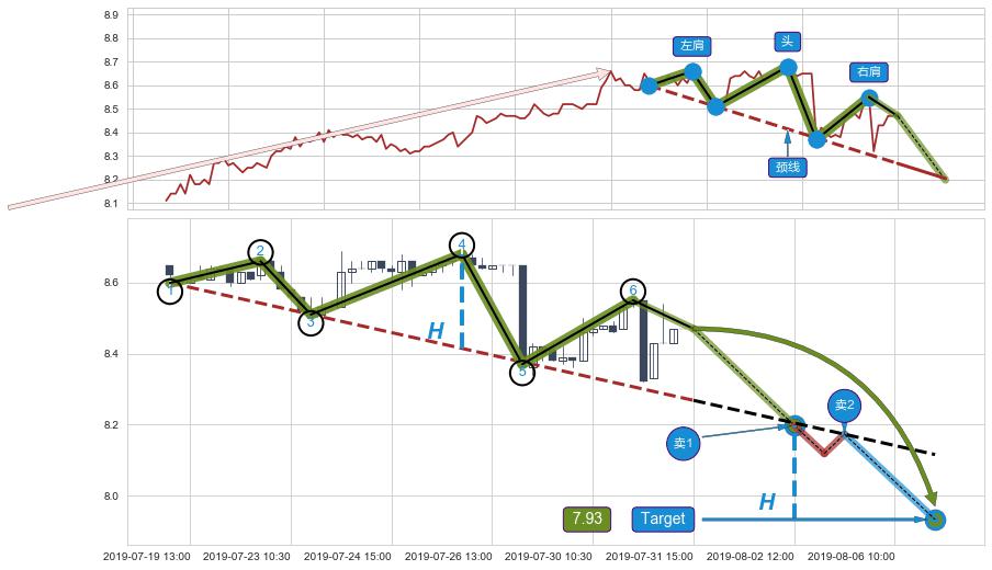 从2019-03-22 15:00至2019-06-17 15:00,共包含331个小时,阶段股价下跌-15.19%,阶段股价变动位移路程比: 1 : 7