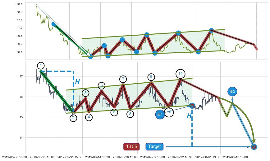 ➢ 【仅预测突破】最后价格:15.96与预测突破价格:15.42→【空间临近】后续最小【整理】第一目标价格→(08-12:15: 14.00 )