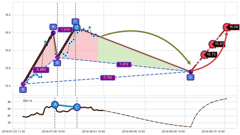 ➢ 谐波价格A点比C点低 ⤵,【RSI】指标A点比C点高 ⤴️