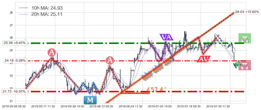 ➣ 【仅预测突破】最后价格:24.25与预测突破价格:24.14→【空间临近】后续最小【反转】第一目标价格→(08-13:12: 22.31 )