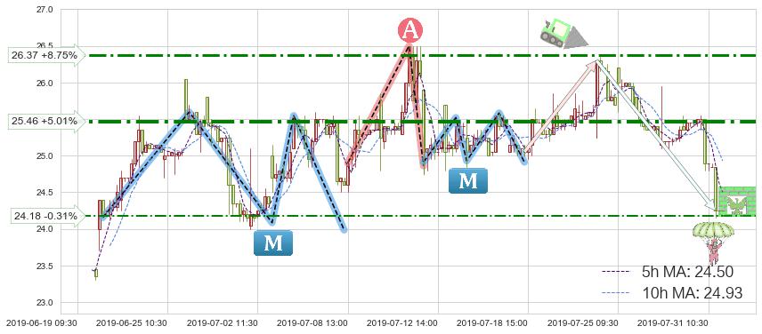 ♘ 阻力价格位25.46,可信任强度75.39%,距离最后交易2019-07-31 15:00形成的收盘价格24.25相差 +5.01%