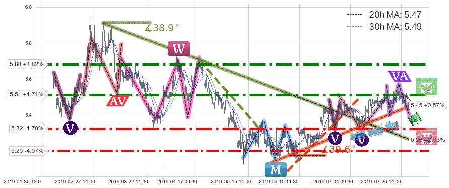 ♘ 支撑价格位5.32,可信任强度94.80%,距离最后交易2019-07-31 15:00形成的收盘价格5.42相差 -1.78%