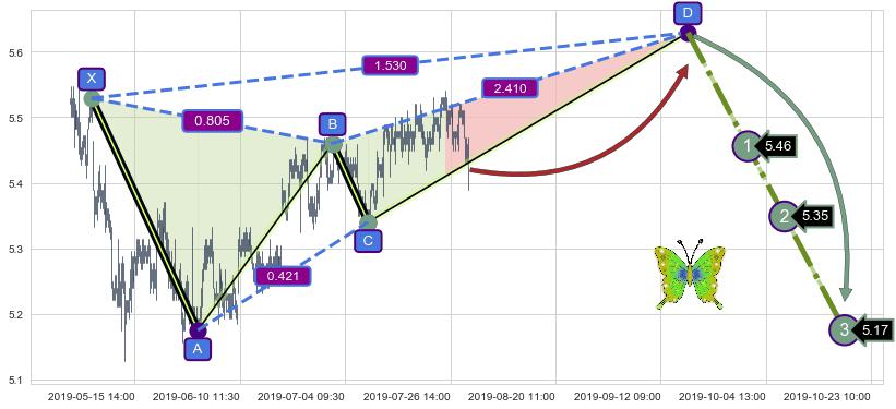 ➣ 未完成【蝴蝶】形态起点X: 05-03:15, 已到达C点: 07-09:14, 预测最终D点: 09-18:11, 共544交易小时