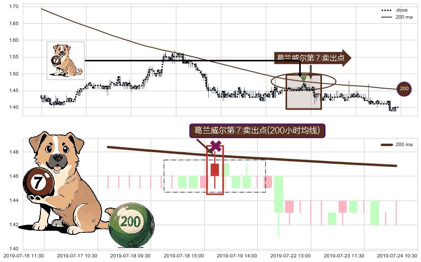 ⚀ 2019-07-19 09:30:00-小时显现 葛兰威尔均线 200小时均线 第⑦卖出点 下降趋势的中继信号,后市看跌,卖出信号