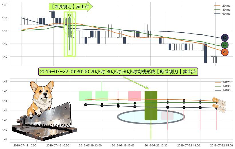 ⚀ 2019-07-22 09:30:00小时显现 20小时-30小时-60小时均线 【断头铡刀】卖出点 看空信号,后市看跌,卖出