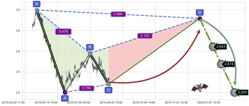 ➢ 距离预测D点位置有足够的上涨空间, 与看跌【蝙蝠】形态相反,实际方向【看涨】
