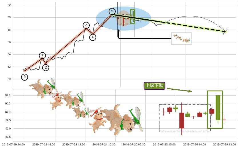 从2019-07-23 15:00至2019-07-31 15:00,共包含37个小时,阶段股价上涨0.55%,阶段股价变动位移路程比: 1 : 21