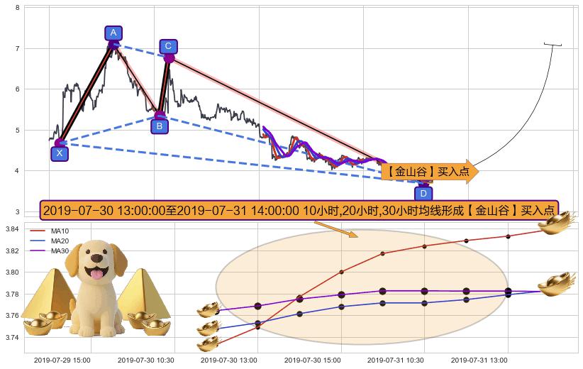 ➢ 低点影线(07-30:10: 3.710 )→再次回踩→第二根k线低点(07-29:13: 3.730 )