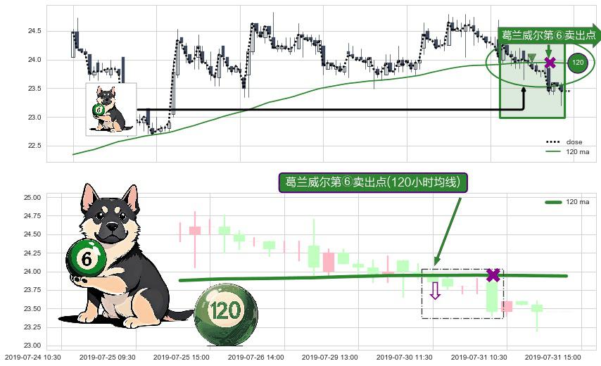 ⚀ 2019-07-30 11:30:00-小时显现 葛兰威尔均线 120小时均线 第⑥卖出点 走势反转见顶信号,后市看跌,卖出信号