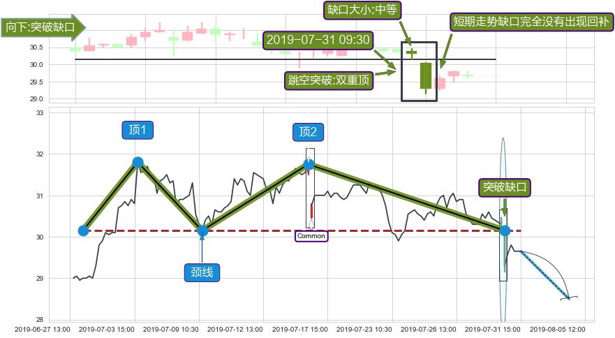 ➢ 2019-07-31 09:30形成:向下跳空【突破】缺口