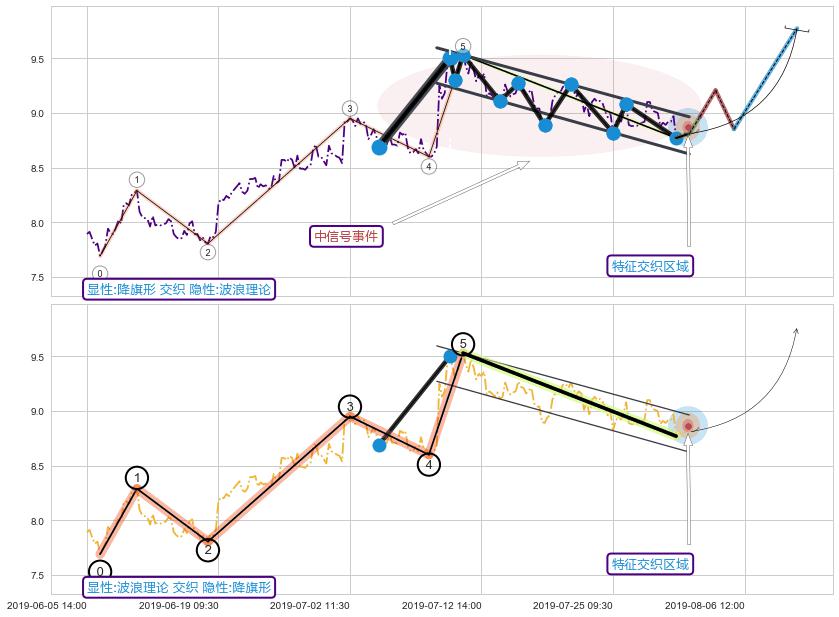 从2019-05-31 09:30至2019-06-11 15:00,共包含42个小时,阶段股价上涨2.16%,阶段股价变动位移路程比: 1 : 12