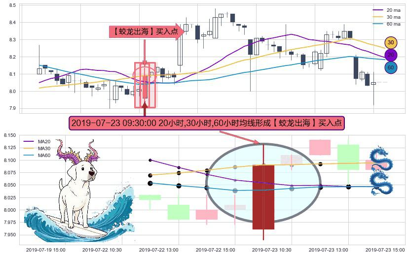 ⚀ 2019-07-23 09:30:00小时显现 20小时-30小时-60小时均线 【蛟龙出海】买入点 看多信号,后市看涨,买入