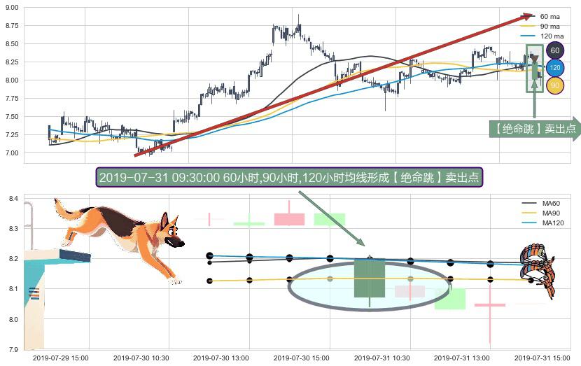 ⚀ 2019-07-31 09:30:00小时显现 60小时-90小时-120小时均线 【绝命跳】卖出点 看空信号,后市看跌,卖出