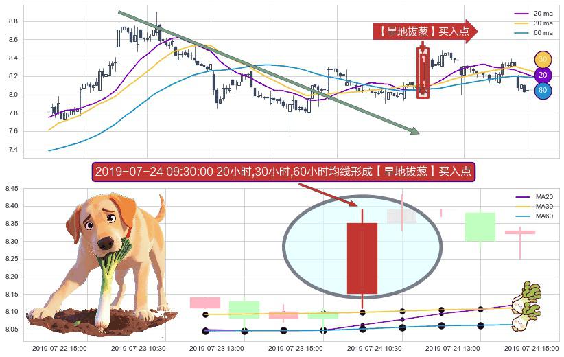⚀ 2019-07-24 09:30:00小时显现 20小时-30小时-60小时均线 【旱地拔葱】买入点 看多信号,后市看涨,买入