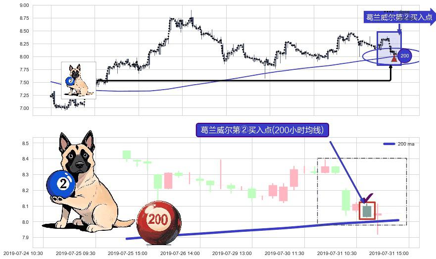 ⚀ 2019-07-31 11:30:00-小时显现 葛兰威尔均线 200小时均线 第②买入点 上升趋势的中继信号,后市看涨,买进信号