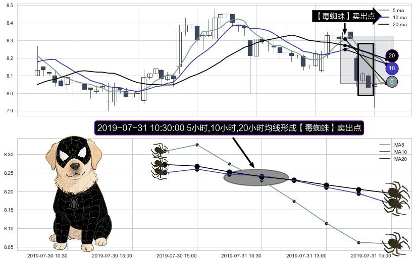 ⚀ 2019-07-31 10:30:00小时显现 5小时-10小时-20小时均线 【毒蜘蛛】卖出点 看空信号,后市看跌,卖出