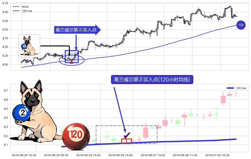 ⚀ 2019-06-26 13:00:00-小时显现 葛兰威尔均线 120小时均线 第②买入点 上升趋势的中继信号,后市看涨,买进信号