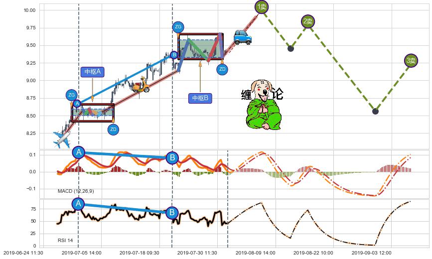 ➣ 【未完成】缠论 起点:06-26:15, 完成第1中枢A,完成第2中枢B,到达07-31:15