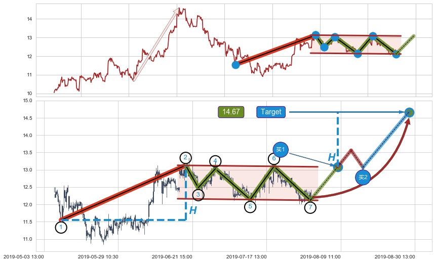 ➣ 【已确认突破】最后价格:12.20与最小【整理】第一目标价格→(08-08:15: 14.02 )相较: 上涨空间【中等】