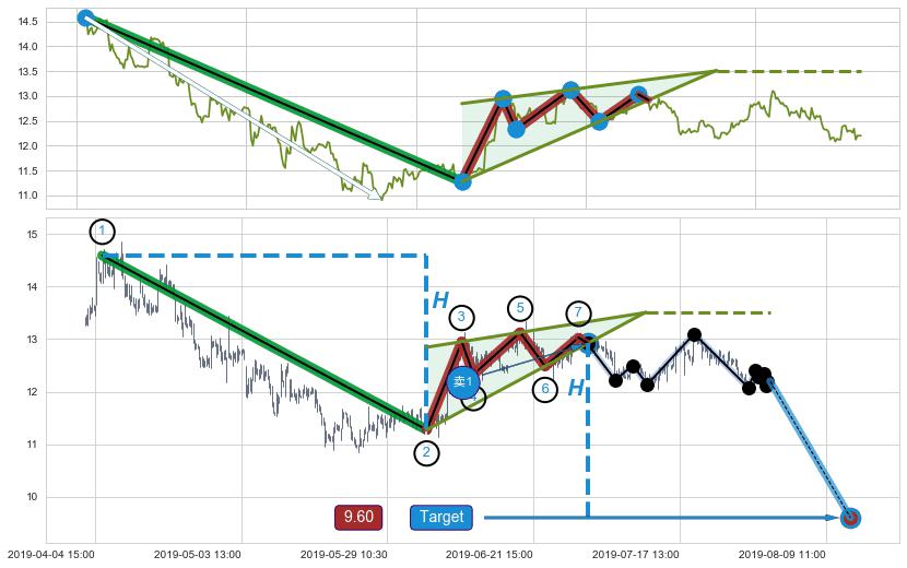 ➣ 【已确认突破】最后价格:12.20与最小【整理】第一目标价格→(08-14:10: 9.60 )相较: 下跌空间【较大】