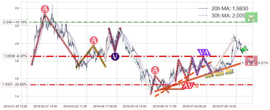 ♘ 阻力价格位2.240,可信任强度54.29%,距离最后交易2019-07-31 15:00形成的收盘价格1.9800相差 +13.15%