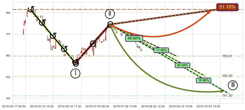 ➣ 大趋势循环浪继续向下概率48.90%