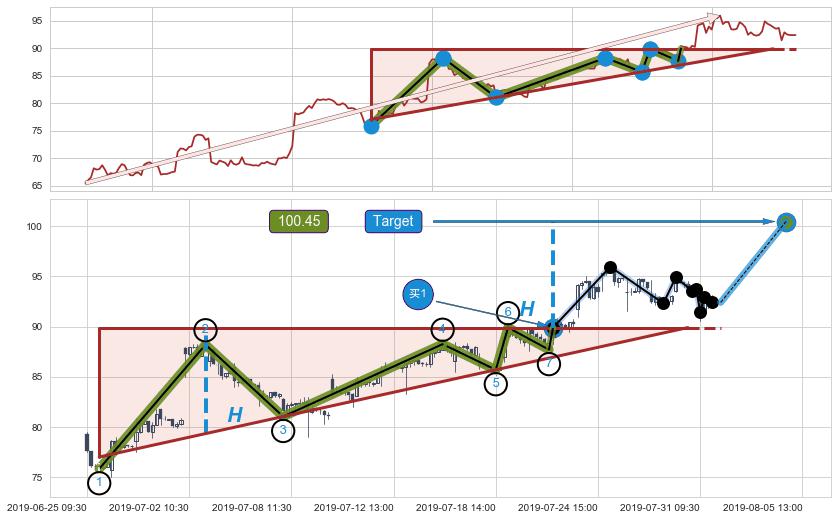 🍖 长线趋势跟踪组合短线均值回复[强支撑信号]2019-05-30 13:00-2019-07-30 15:00上升趋势依然成立(上涨趋势跟踪依然可行),短线价格略微下行回调(均值回复猜想),即将接近趋势提供的未破位的支撑价格:92.76。