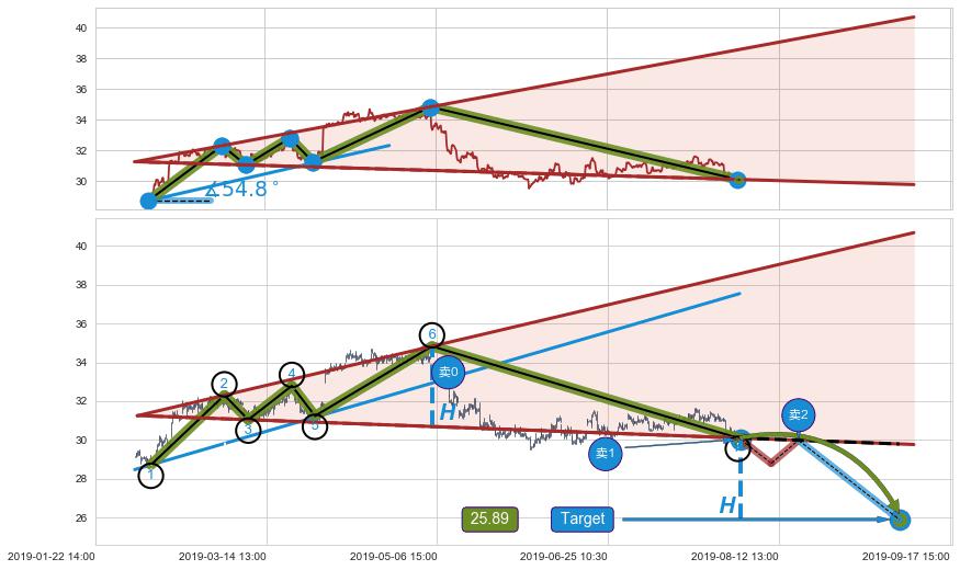 | 2 📈:趋势线支撑位已破位下跌 ➕ 📐:扩散三角反转临近支撑猜想转换阻力下跌 ☞ 看空信号 ⇥ 【图形】交织【图形】⇥ 综合量化分数: 40 | > |