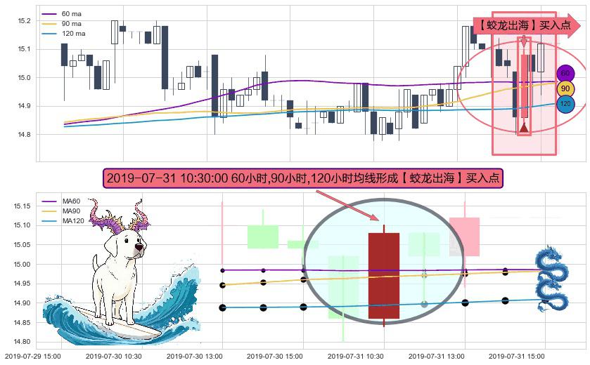 形态多维评估: ⚀ 2019-07-31 10:30:00小时显现 60小时-90小时-120小时均线 【蛟龙出海】买入点 看多信号,后市看涨,买入