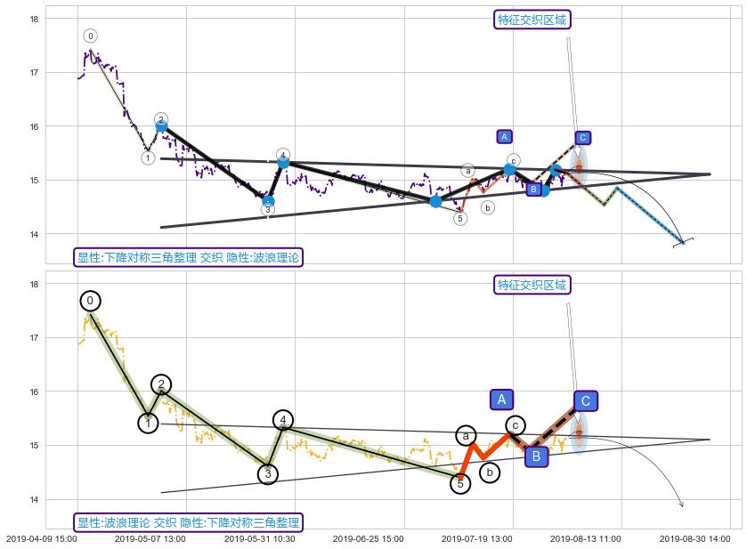 | 9 🅚:中流砥柱形态 ➕ 🌊:波浪理论即将到达C点,猜想随后C点击穿突破, 下跌5浪延续反弹趋势,猜想持续蓄力反弹abc上涨方向(大周期趋势均值回复后小周期持续趋势跟踪) ☞ 看多信号 ⇥ 【🅚线】交织【图形】⇥ 综合量化分数: 54 | > |