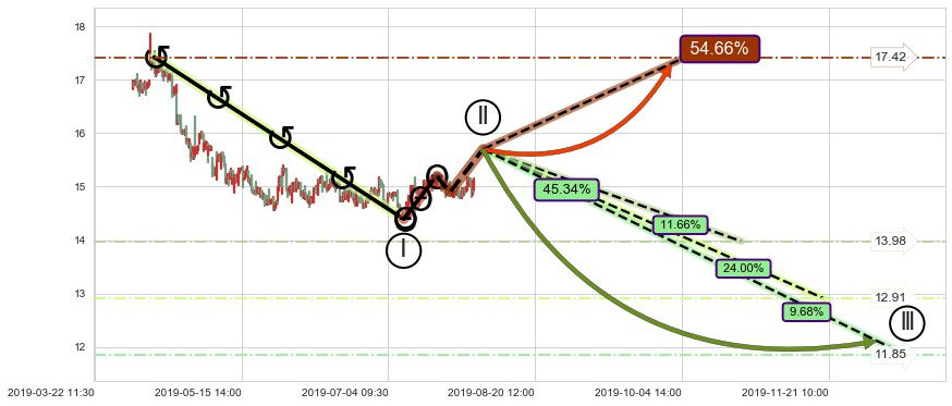 ➢ 循环浪继续向下【最低】位置(12-16:14, 11.85),匹配聚类样本比例21.34%, 可能性概率9.68%