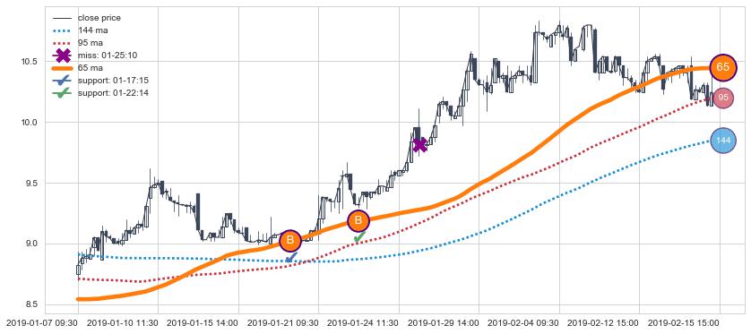 上涨趋势01-07 09:30-02-15 15:00,均线65确认关键支撑2处