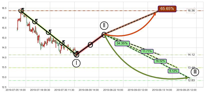 ➢ 循环浪继续向下【最高】位置(09-09:14, 14.12),匹配聚类样本比例34.08%, 可能性概率11.71%