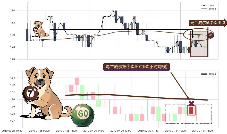⚀ 2019-07-31 11:30:00-小时显现 葛兰威尔均线 60小时均线 第⑦卖出点 下降趋势的中继信号,后市看跌,卖出信号