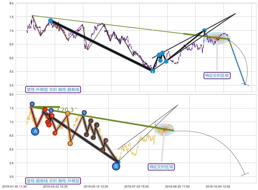 从2019-04-09 15:00至2019-06-14 10:30,共包含255个小时,阶段股价下跌-21.23%,阶段股价变动位移路程比: 1 : 8,下跌趋势角度: 65.6