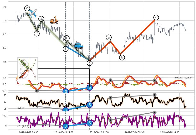 ➢ a,c调整浪MACD, RSI, KDJ走势都【未出现】背离,abc走势延续, 5浪反转概率增强