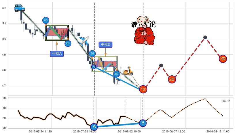 ➣ 【未完成】缠论 起点:07-19:15, 完成第1中枢A,完成第2中枢B,到达07-31:15