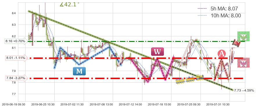 ♘ 支撑价格位8.01,可信任强度86.61%,距离最后交易2019-07-31 15:00形成的收盘价格8.10相差 -1.11%