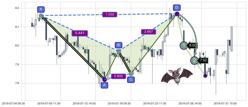 ➣ 已完成【蝙蝠】形态起点X: 07-05:13, 终点D: 07-24:11, 共78交易小时