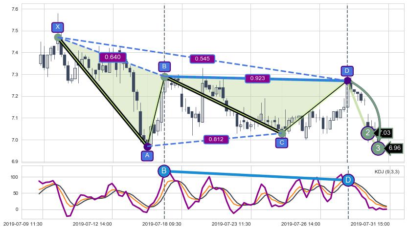➢ 谐波价格D点比B点高 ⤴,【KDJ】指标D点比B点低 ⤵️