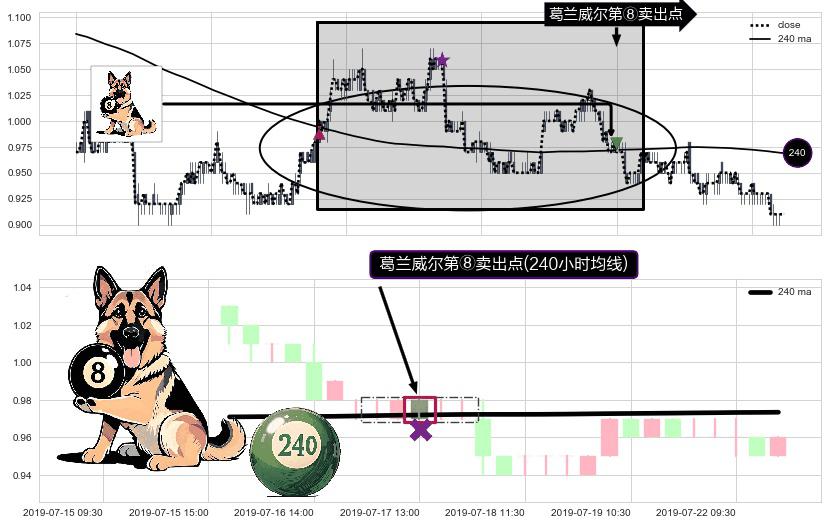 ⚁ 240小时均线 第⑧卖出点 属于 均线服从 信号,属于趋势运行的【常态】即信号期望为下降趋势的中继