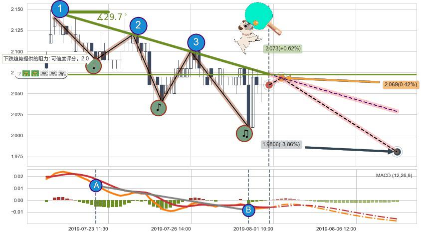 ➢ 预测:2019-08-01 12:00,【小幅反弹】稳定目前下跌趋势的前提下,预测价格:2.069